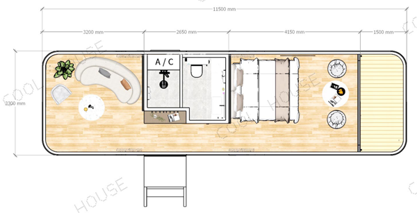 長(zhǎng):11.5M寬3.3M高3.2M建筑面積:38㎡